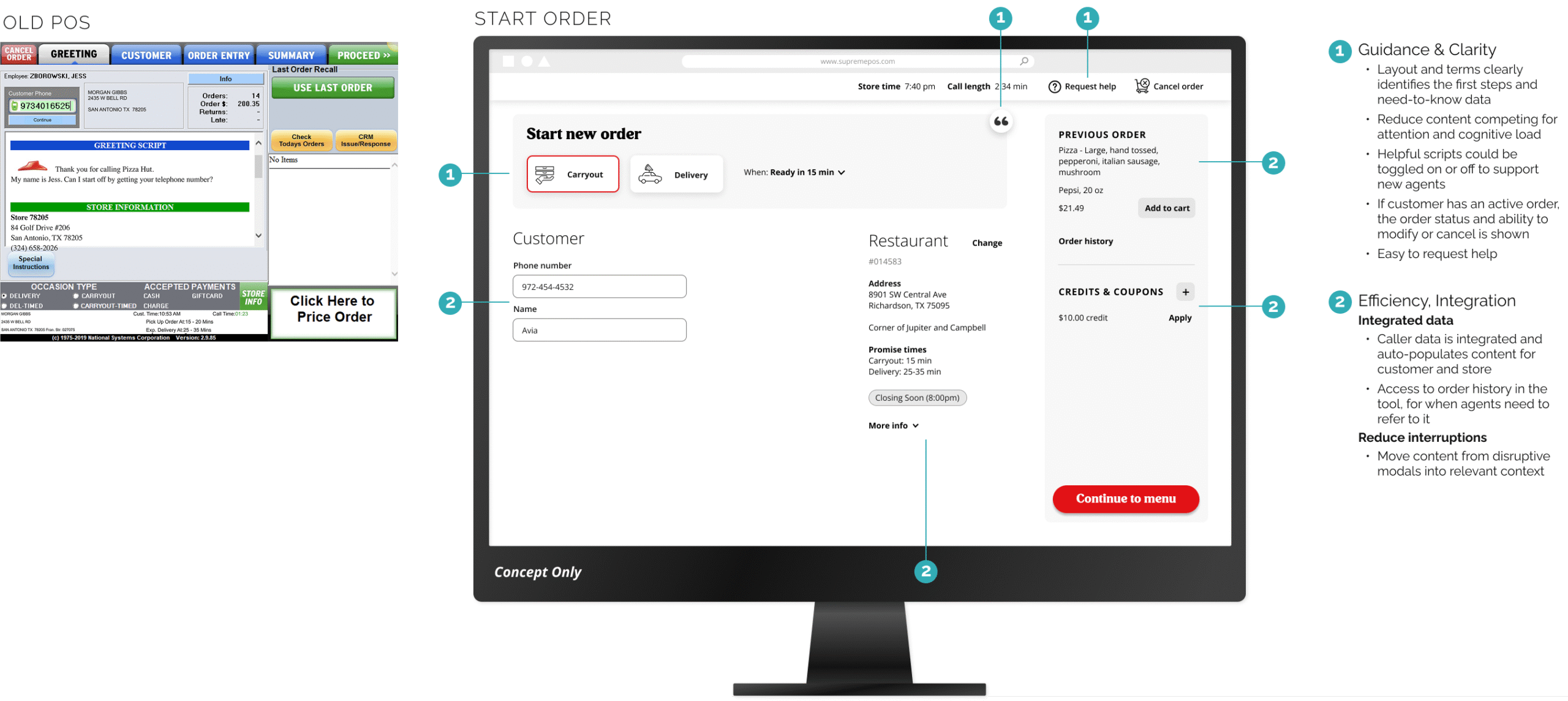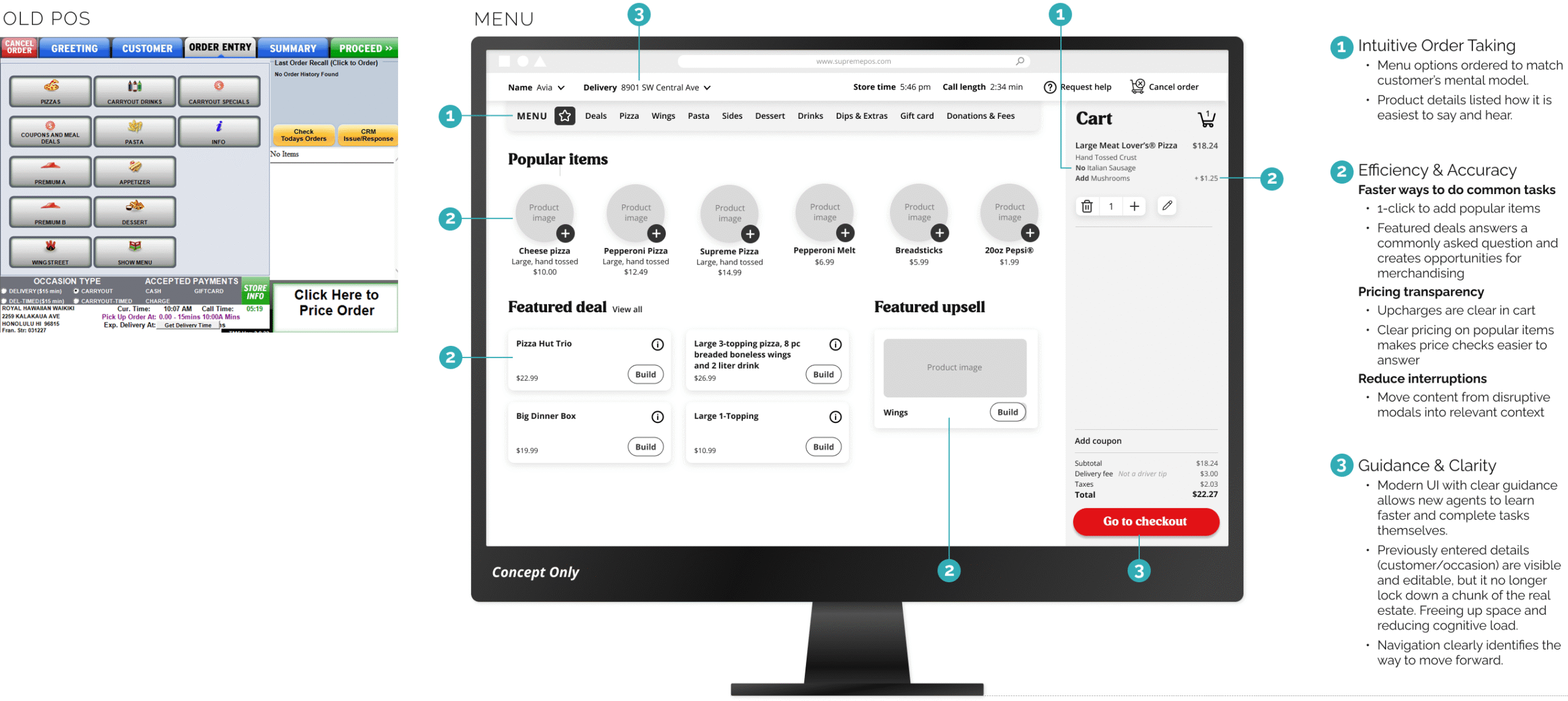 Pizza Hut’s call centers were operating on two separate, decades-old POS systems with outdated GUIs and limited flexibility. While kudos should be given to the dev teams that made them work for this long, the limitations made it difficult to support evolving business goals and user needs.