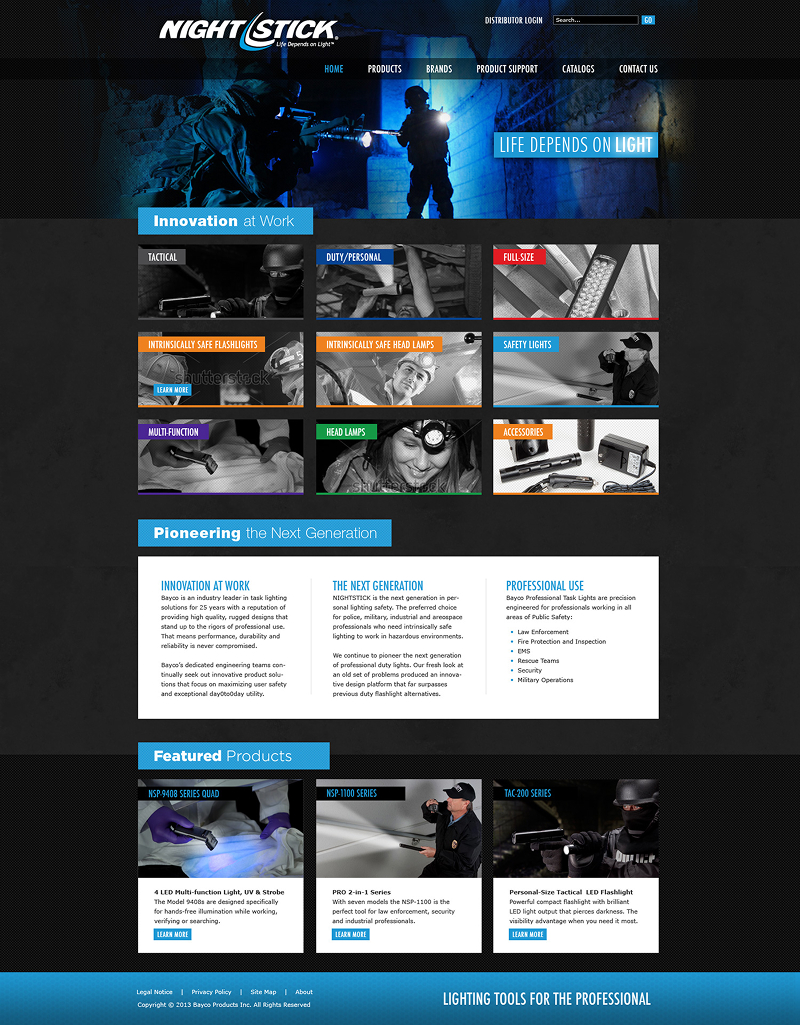 Designed parallel websites for Bayco Products and its Nightstick brand — creating a shared information architecture and component system adaptable to each brand’s visual identity, product focus, and target market. This dual-site approach simplified maintenance, ensured brand alignment, and created a scalable design foundation that could evolve as new products and categories were introduced.